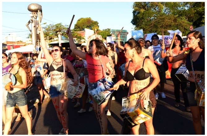 No começo, seo Firmino Pereira, 65 anos, não entendeu nada. Um monte de mulher pintada, com pouca roupa, parando o trânsito em plena Avenida Getúlio Vargas. E nem é carnaval! Vendedor de pipoca há 25 anos, ele concordou com a Marcha das Vadias que cortou o centro de Cuiabá na tarde deste sábado quando soube que, em síntese, o movimento é para lutar contra o machismo. “Tá certo”.