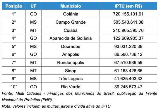 Um Levantamento do anuário Multi Cidades – Finanças dos Municípios do Brasil aponta a arrecadação do conjunto das cidades do Centro-Oeste com o Imposto Predial e Territorial Urbano (IPTU) e detalha os dados das sete mais populosas de cada estado da região, em 2021.