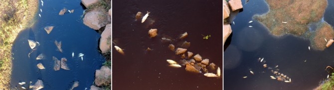 Nos últimos dias várias pessoas ligaram para redação da Rádio comunitária Eldorado FM denunciando uma quantidade razoável de peixes mortos que vem aparecendo nas águas do Rio Beleza em Vila Rica logo abaixo do Frigorífico JBS, a 5 km da cidade, a causa ainda é desconhecida.