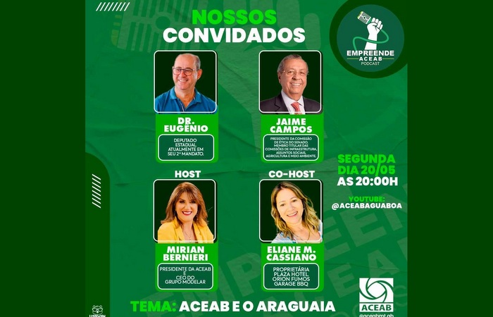 O debate será no Podcast Empreende ACEAB, a ser realizado pelo canal do YouTube @ACEABÁguaBoa, na segunda-feira (20/5), às 20 horas, com o tema "ACEAB e o Araguaia. Entre os assuntos debatidos estão: oportunidade para os possíveis migrantes do Rio Grande do Sul (RS), projeto de migração, rodovia federal BR-158, compras on-line, DPVAT.
